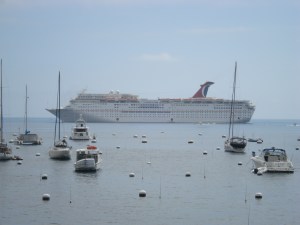 Our cruise ship approaching the island
