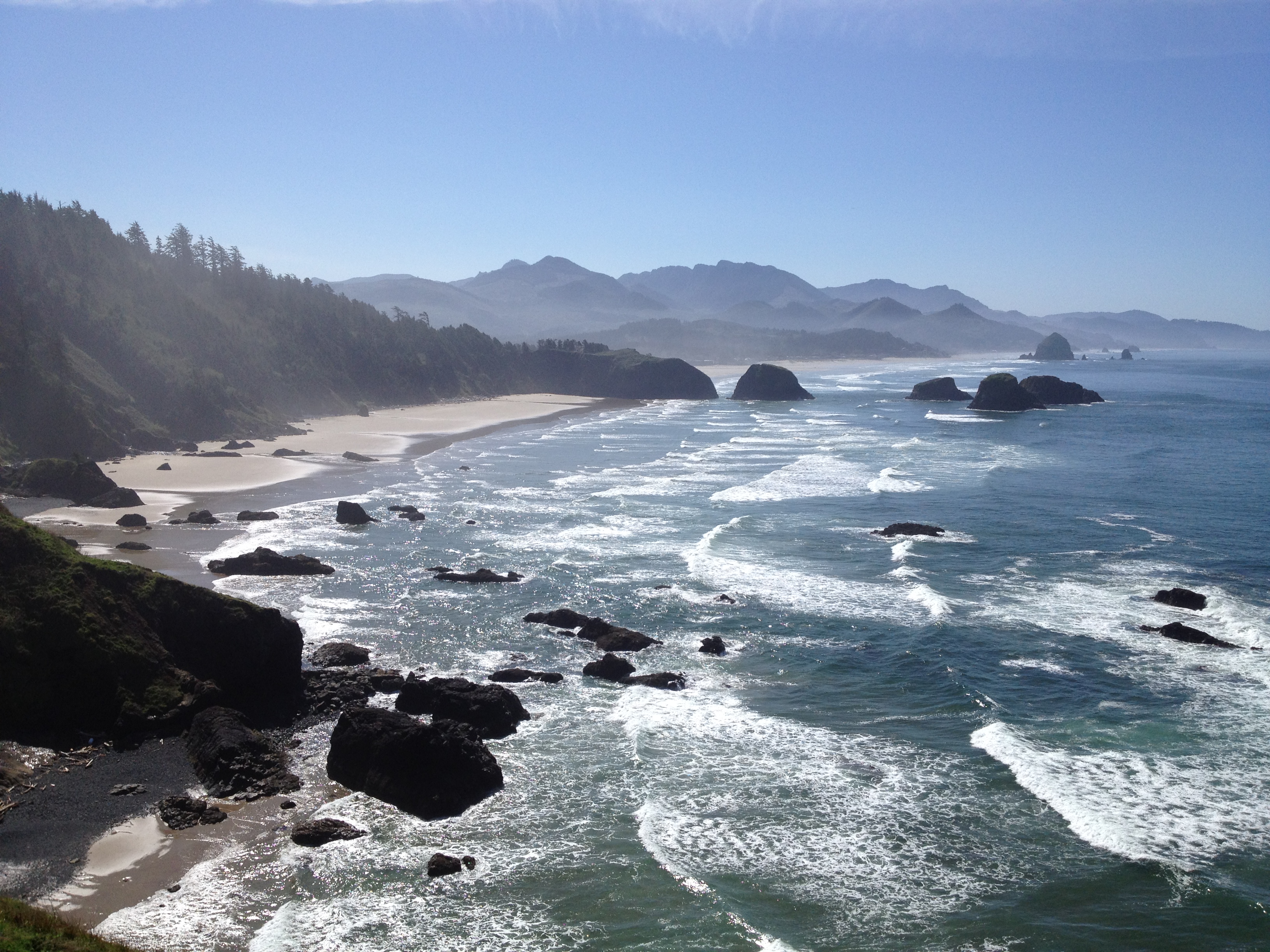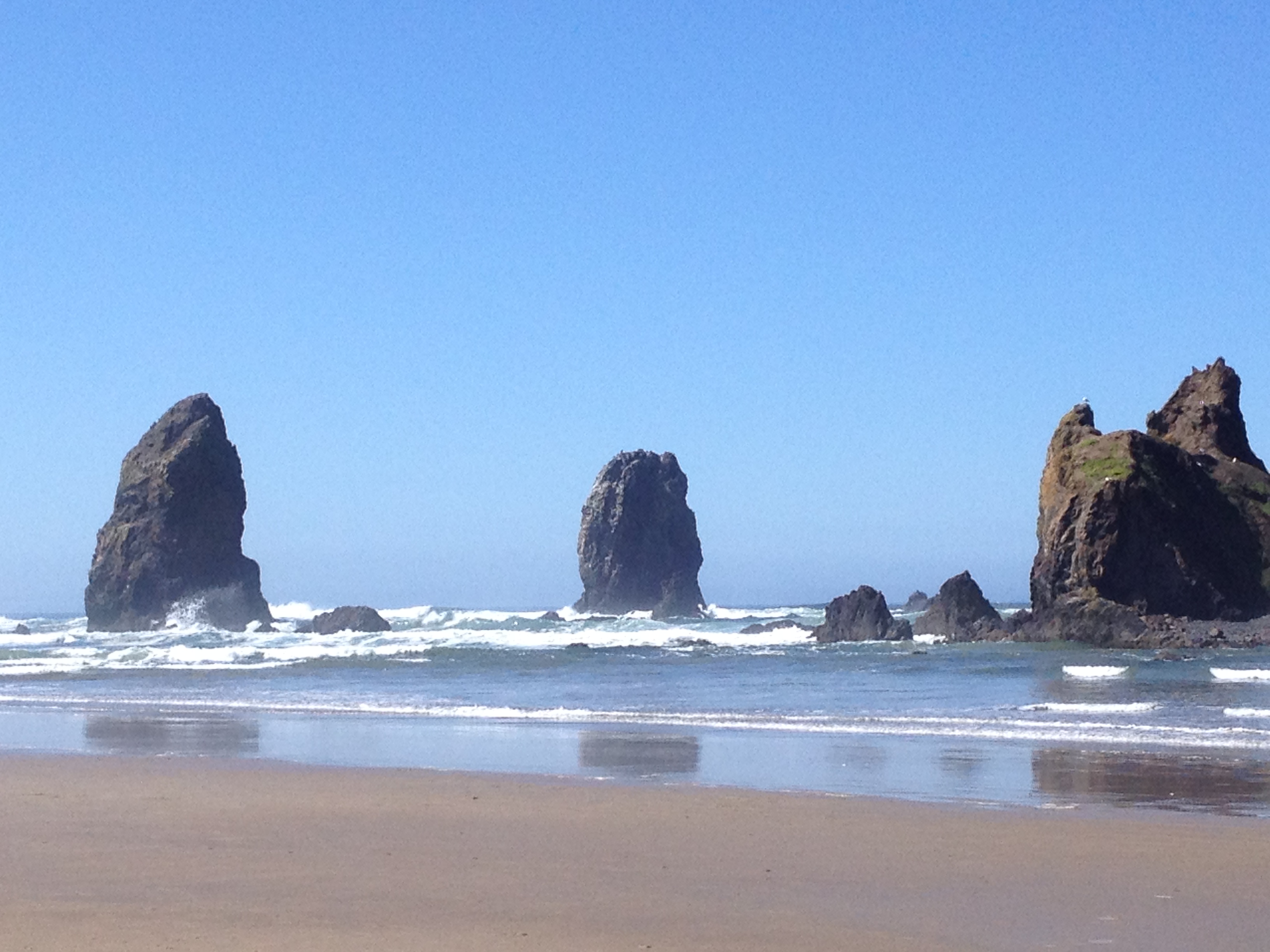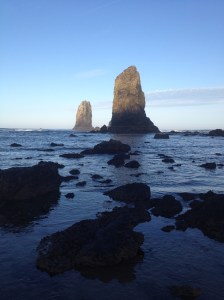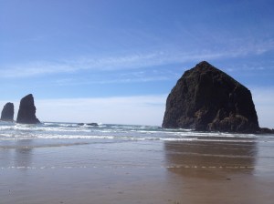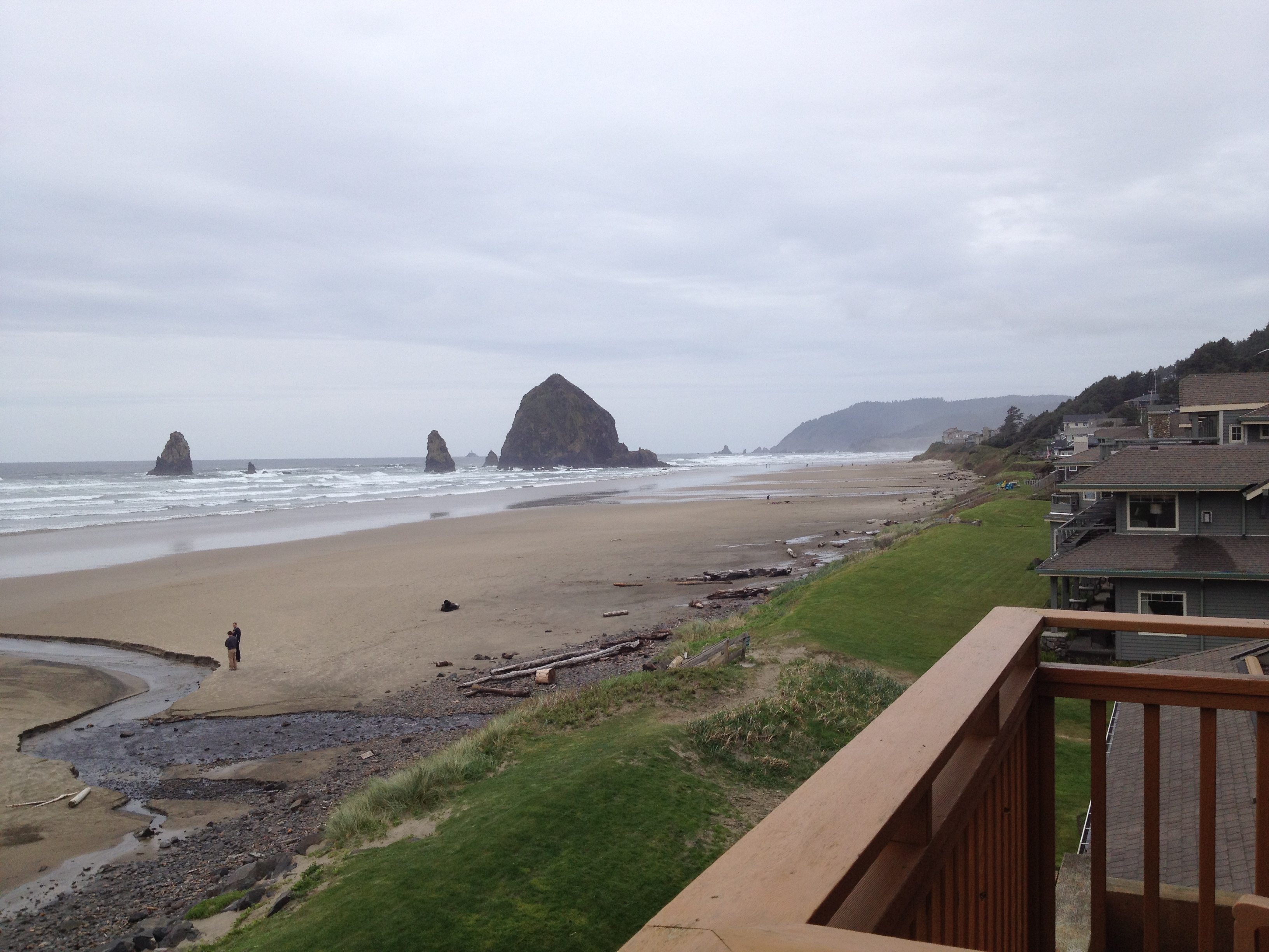 I flew to Portland, Oregon late Thursday night (April 19) from Los Angeles, and mom flew to Portland from Kansas City. We met up at the airport at the lovely hour of midnight, and stayed the night at a nearby hotel. The next morning, after exploring downtown Portland for a couple hours (will post more on that in my next entry), we drove the 70 miles to Cannon Beach. Due to it’s close proximity to Portland, Cannon Beach is a popular getaway destination for Portlanders. But since my mom and I were traveling before summer vacation, we were treated to a quiet retreat. And due to the amazing weather Oregon happened to have that weekend, we were lucky to spend the weekend in sun and 70 degrees!