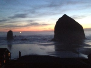 Yep, my title is quoting a line from the 1985 cult film “The Goonies”. And why, you may ask? Well, that’s because I just returned from a marvelous vacation with my mom to Cannon Beach, Oregon, where the concluding scene in “The Goonies” was filmed. Haystack Rock, clearly visible in that scene, is Cannon Beach’s most famous landmark.
