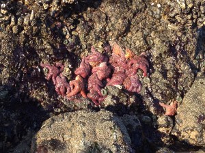 Sunday was our last day in Cannon Beach, so we had to get up early for low tide to get up close to Haystack Rock. Mom dragged me out of bed about 7:30am and we walked down the beach to Haystack and it was so cool to be able to walk next to Haystack Rock. It was amazing that the day before when we walked passed Haystack, the ocean separated us quite a bit. But this early in the morning with the water pushed back, we were free to roam the area mostly spent underwater. Of course, the Oregon Preservation people were out there to make sure visitors didn’t harm the environment, but you were still pretty free to walk around. Also, it was homecoming weekend for the Puffins! We didn’t get to see a puffin up close, but we did get to see several flying around the rock.