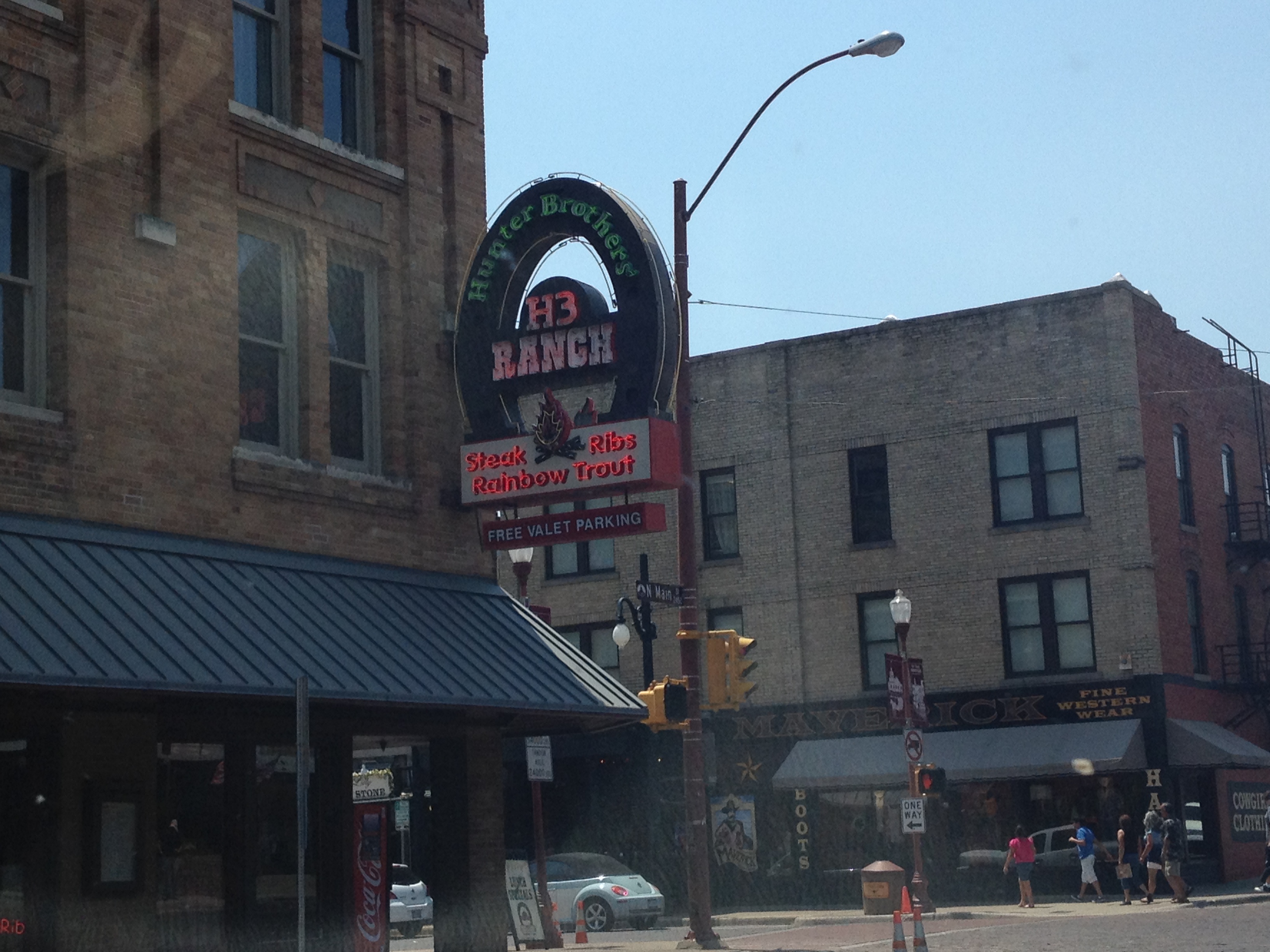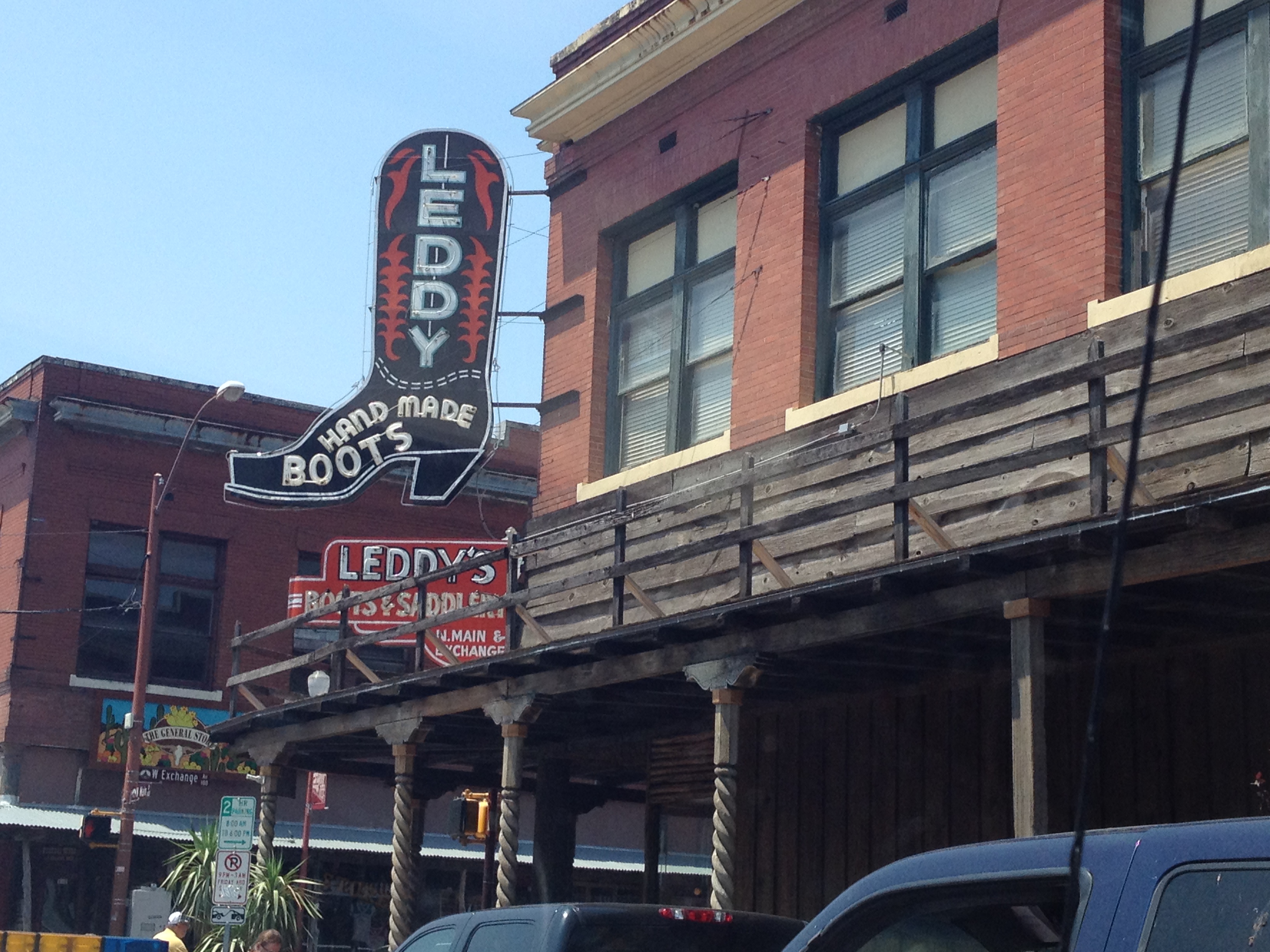 After watching the longhorns do their thing, we toured the Stockyards Station, which essentially looks unchanged from the 1800s. Through the narrow streets of Stockyards Station there are plenty of stores, restaurants and museums to keep you entertained. I bought dad a pretty cool John Wayne painting at one of the stores. There was definitely no shortage of John Wayne memorabilia and Western souvenirs! Also, through the middle of it runs the Tarantula Train, which still runs today. And Hillary guesses the name “Tarantula” stems from the fact that the train runs really really slow through Stockyards Station. Sounds good to me!