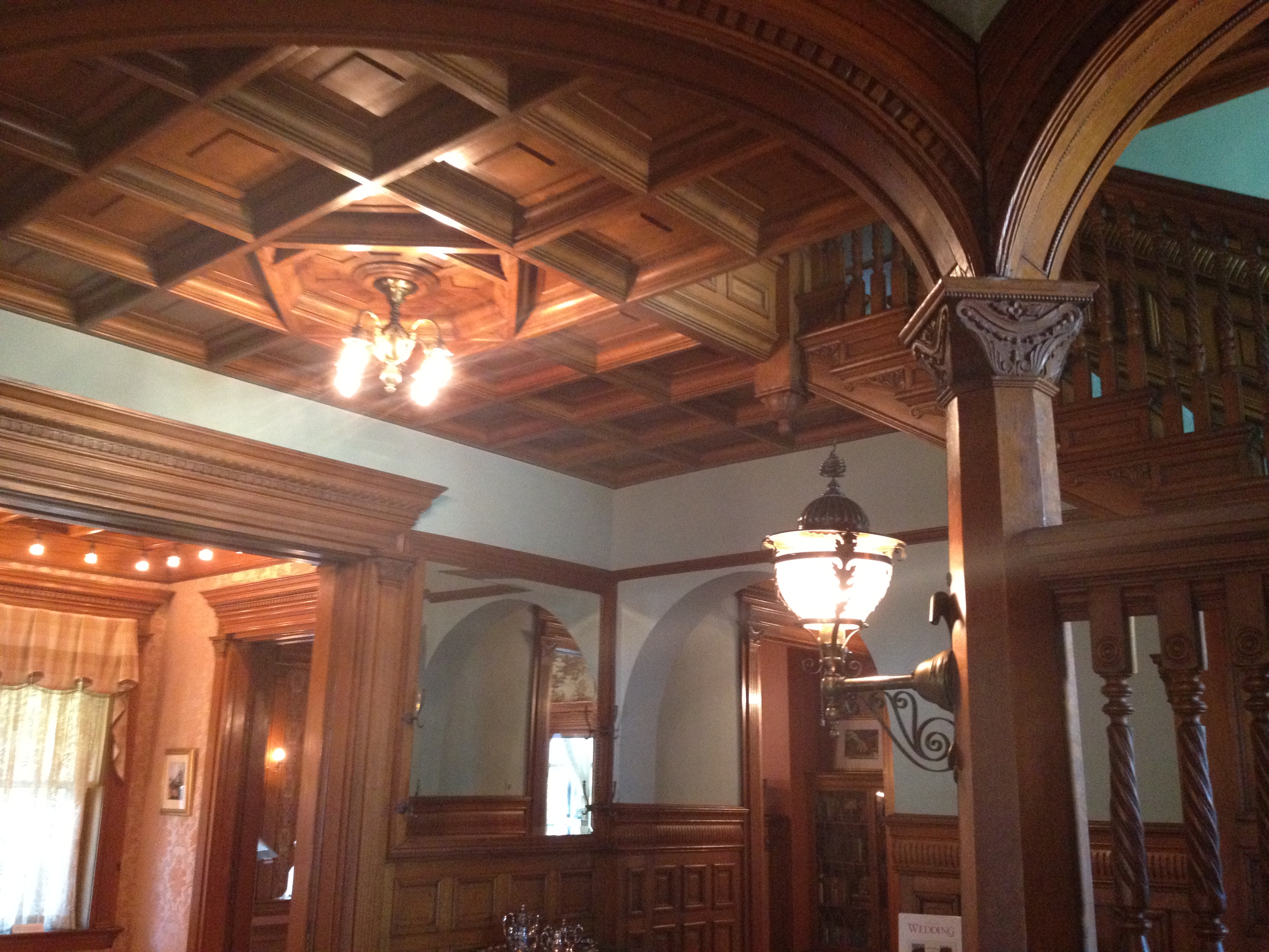 Ball-Eddleman-McFarland House across the street. This home gets it’s name from the three women who occupied the home. It was built in the Victorian style in 1899 on a high hill overlooking the river and is a part of Quality Hill. The home was originally built for Sarah Ball but she only lived there a very short time before it was purchased by William Eddleman in 1904 after Mrs. Ball passed away. Eddleman’s daughter, Carrie McFarland, lived in the home until her death in 1978 at the age of 99. She was the homes longest living resident and therefore the home remained mostly in it’s original design. In 1979, the home was purchased by the Junior League of Fort Worth and then by Historic Fort Worth that also owns Thistle Hill. Both of these mansions feature lots of wood work (in the floors, walls, fireplaces, ceilings, etc) which is reminiscent of the craftsman style.
