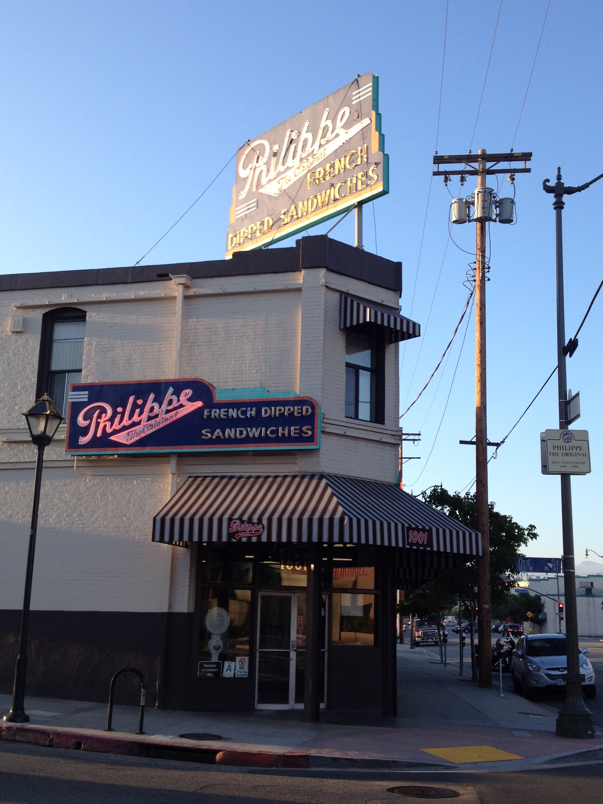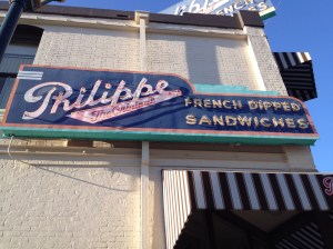 Philippe The Original is the oldest continuously running restaurant in Southern California. It was established in 1908 by Philippe Mathieu, and it is here that the “French Dipped Sandwich” claims to be invented. According to their website, the story goes “One day in 1918, while making a sandwich, Mathieu inadvertently dropped the sliced french roll into the roasting pan filled with juice still hot from the oven. The patron, a policeman, said he would take the sandwich anyway and returned the next day with some friends asking for more dipped sandwiches. And so was born the “French Dipped Sandwich,” so called either because of Mathieu’s French heritage, the French roll the sandwich is made on or because the officer’s name was French. The answer is lost to history.”
