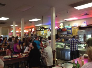 To order, customers wait in the lines leading up to the long display counter where the servers take your order and prepare your meal. The meals are served cafeteria-style on paper plates and trays, and seating is family style. Philippe’s is delicious and affordable, and worth a visit if you are in LA!