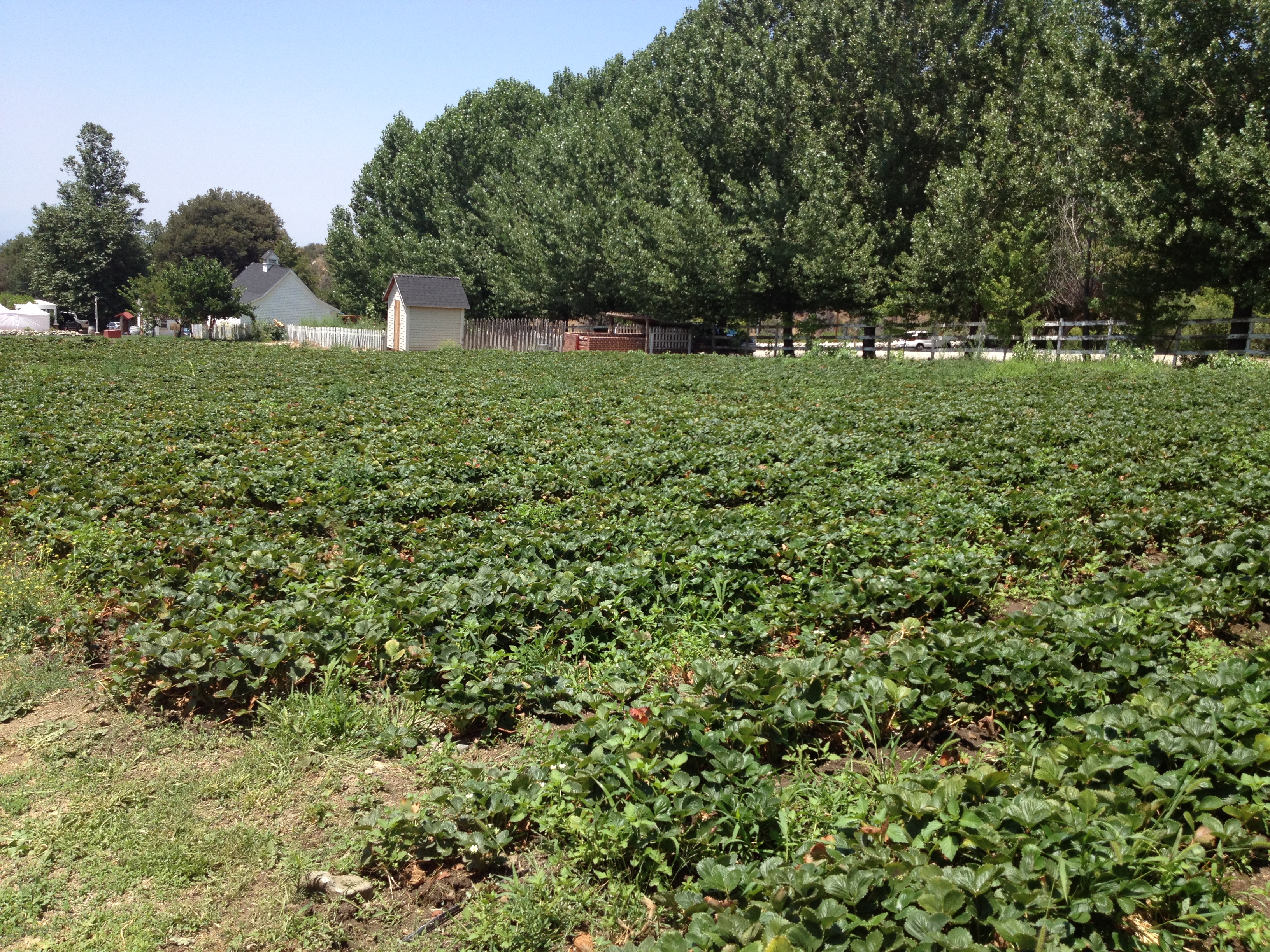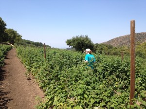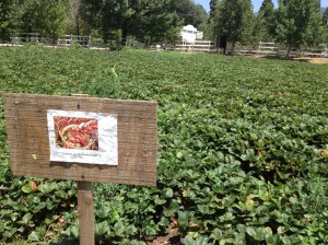 After we nearly filled our baskets, we headed to the strawberry patch. We both were pretty timid here since we were afraid of a rattlesnake popping out at us, but we did not see one, only snake holes.