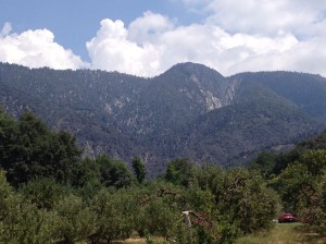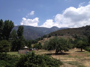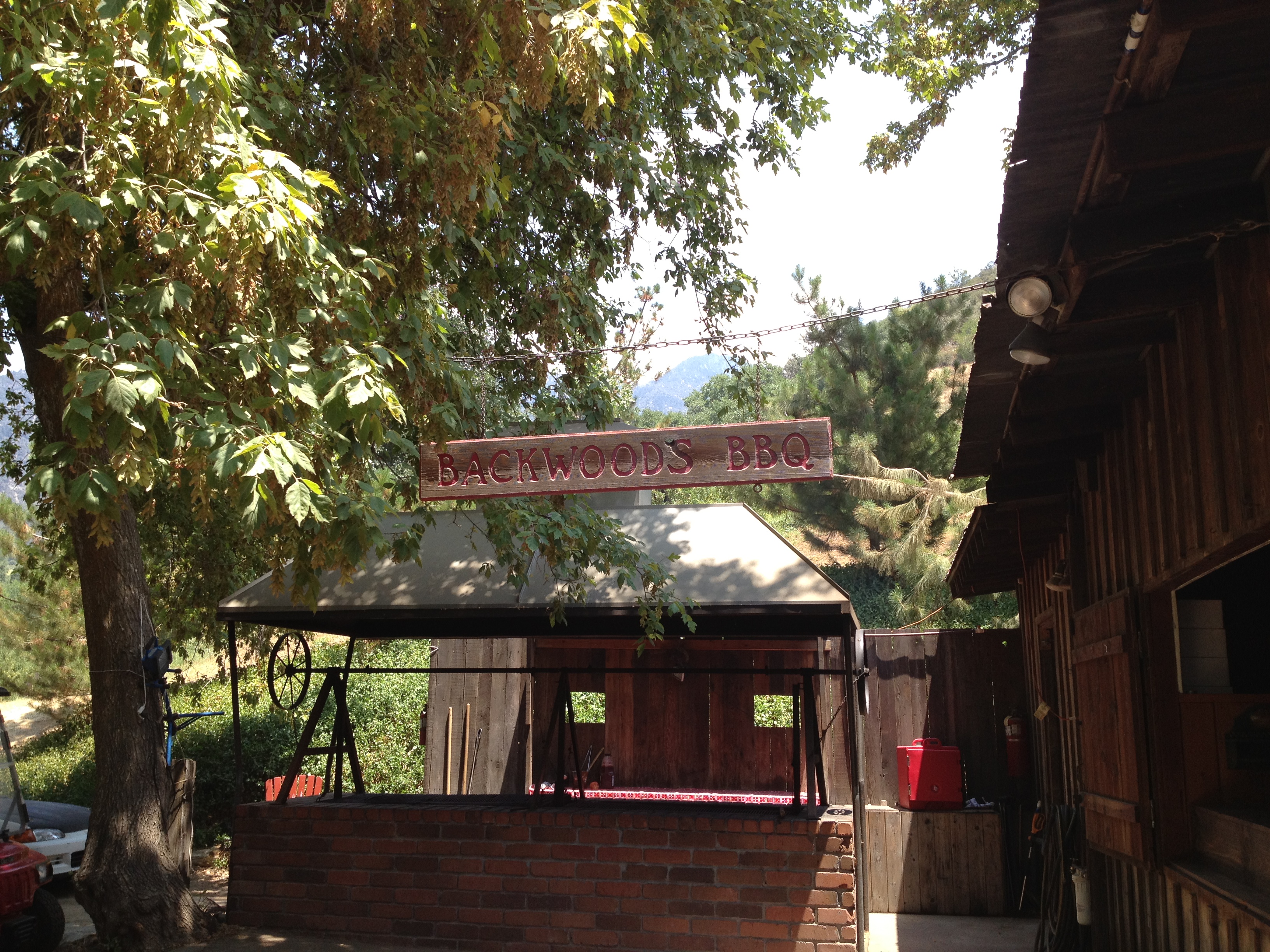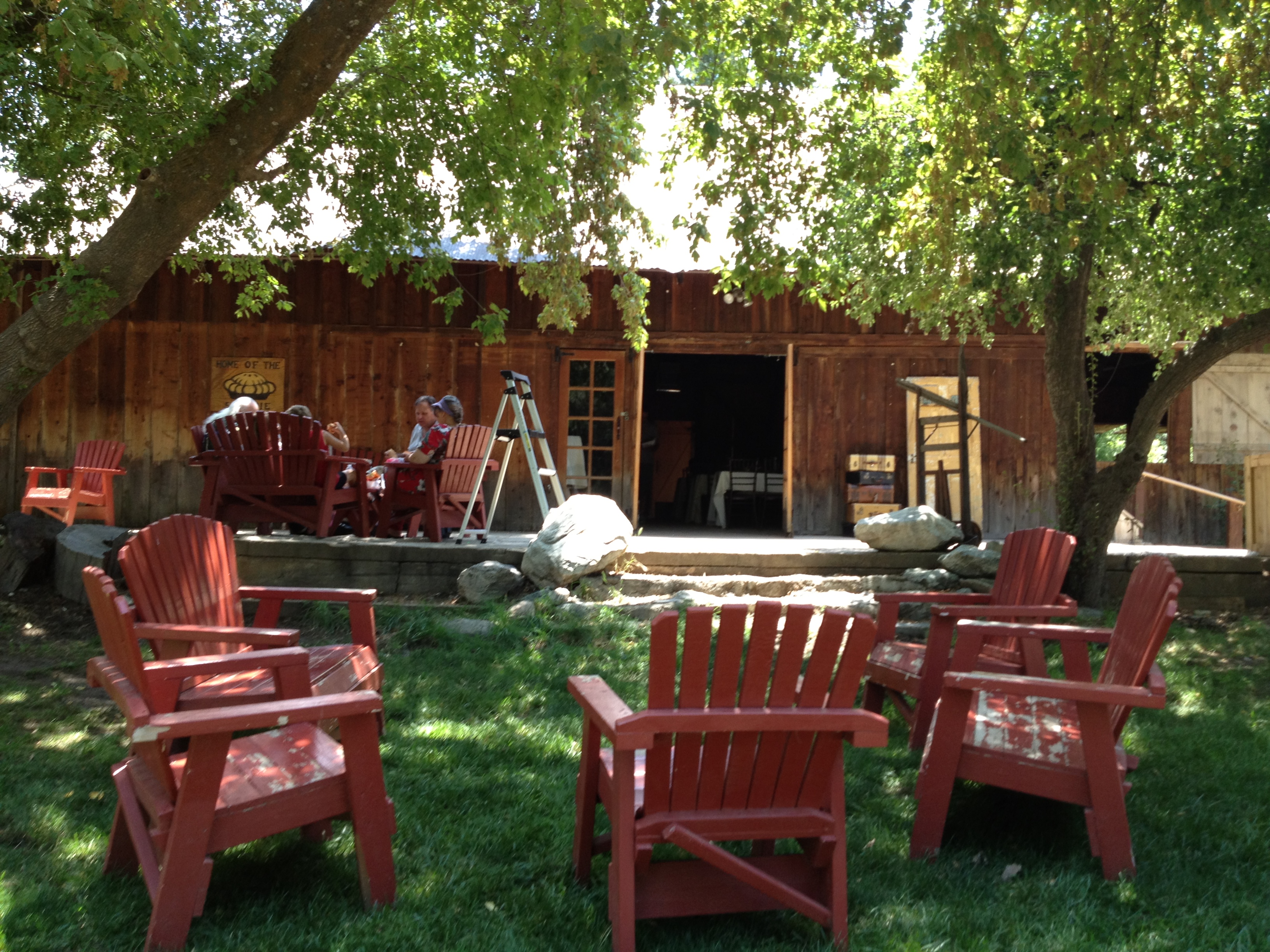 After we finished picking, we were hungry for lunch! We headed back to the General Store to have our berries wrapped up, and then we walked to their lunch area where they cook their own BBQ over a big outside wood burning cooker. We both ordered the BBQ beef sandwich and it was delicious! We ate our sandwiches out on their patio looking up at the mountains. It was beautiful.