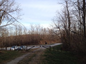 The parking area for Sun Bridge Conservation Area, and the first gate to pass through on your way to the cemetery.