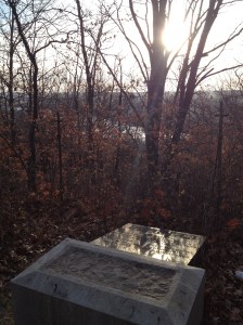 There was a small graveyard we had parties in when in high school where the VIEW over the river and Kansas was identical. This must be very near it. Arthur Meers, ex-mayor, owned the property. Had a rod-iron fence and maybe 6 gravestones but the same view from sitting on the bluffs.