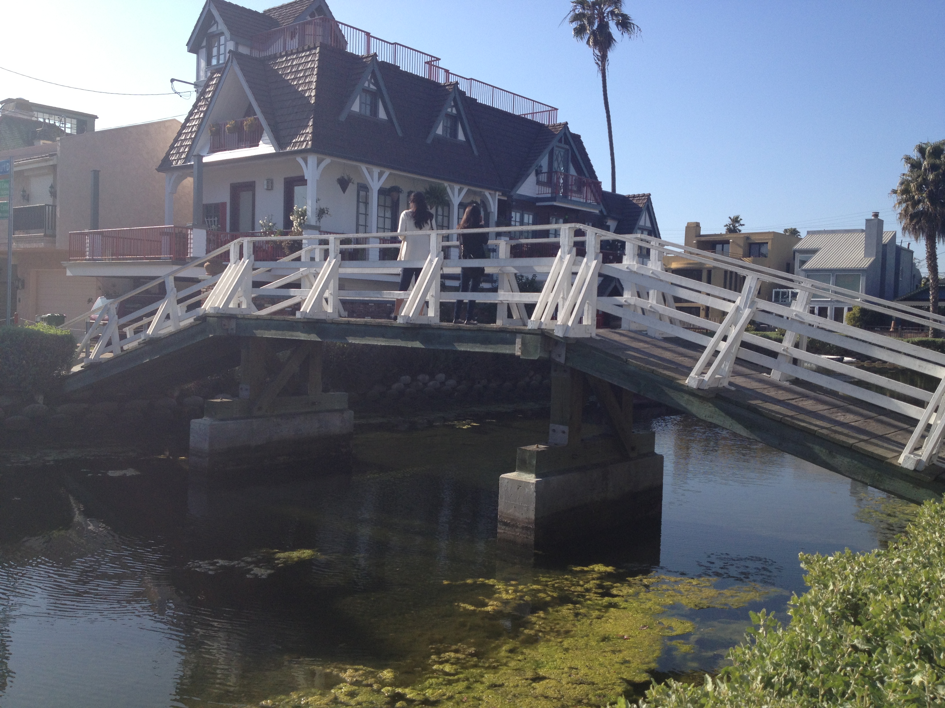 But Mr. Kinney’s canals did survive and that is where Hillary and I spent the rest of our afternoon. In 1905, Abbot Kinney built this district of man-made canals as part of his “Venice of America.” He sought to recreate the charm of Venice, Italy with his beautifully constructed canals and arched bridges. He even brought in gondolas and gondoliers from Venice, Italy! This area became quite renowned, but as automobiles gained popularity the canals became outdated; and in 1929 many were filled in to create roads. By 1940 the canals were in such disrepair the city condemned the area. It wasn’t until 1992 that there was enough support financially for a full renovation. The canals were drained and new sidewalks were built, and the area re-opened in 1993 to become one of the most expensive residential districts of the city.