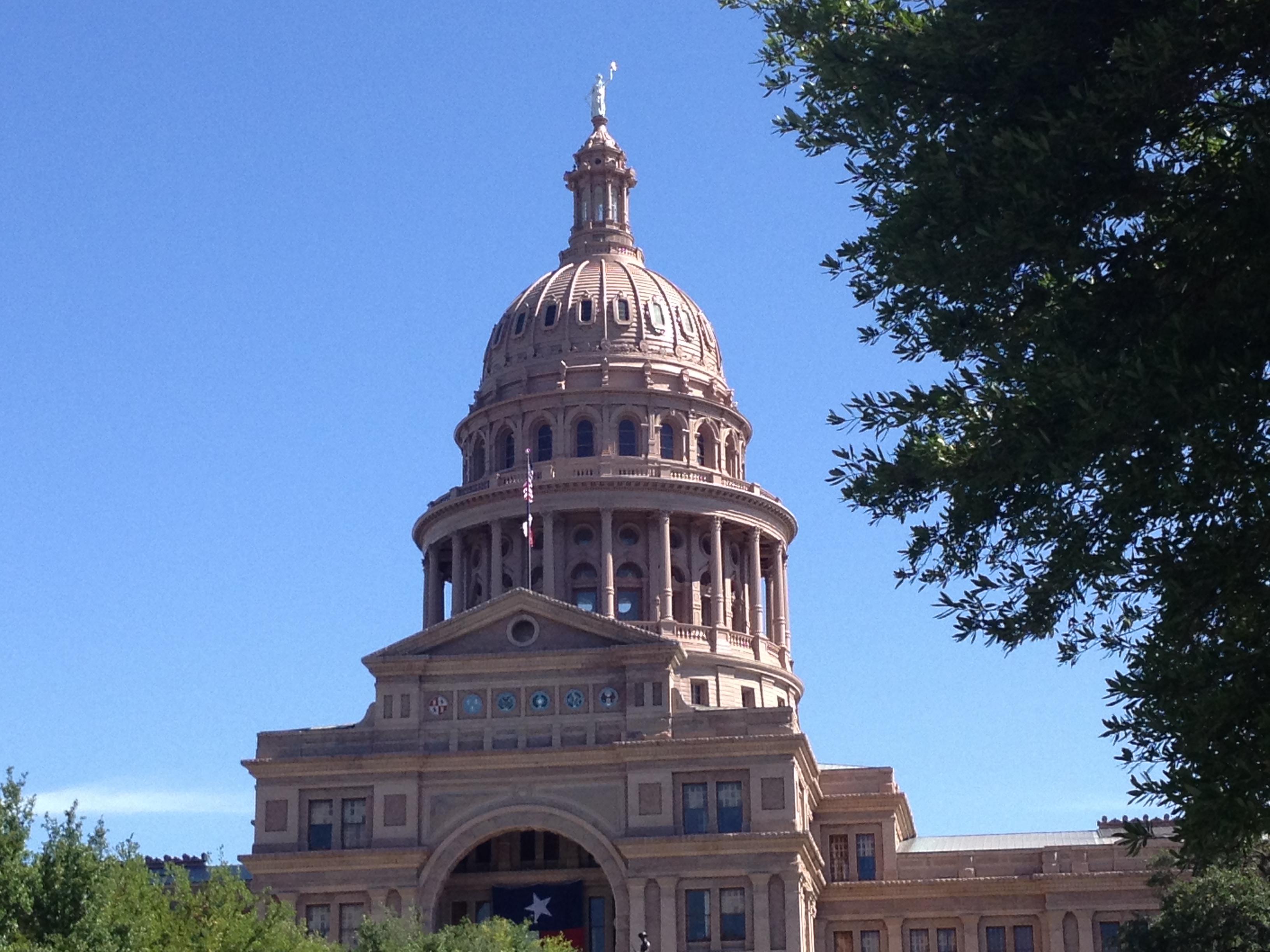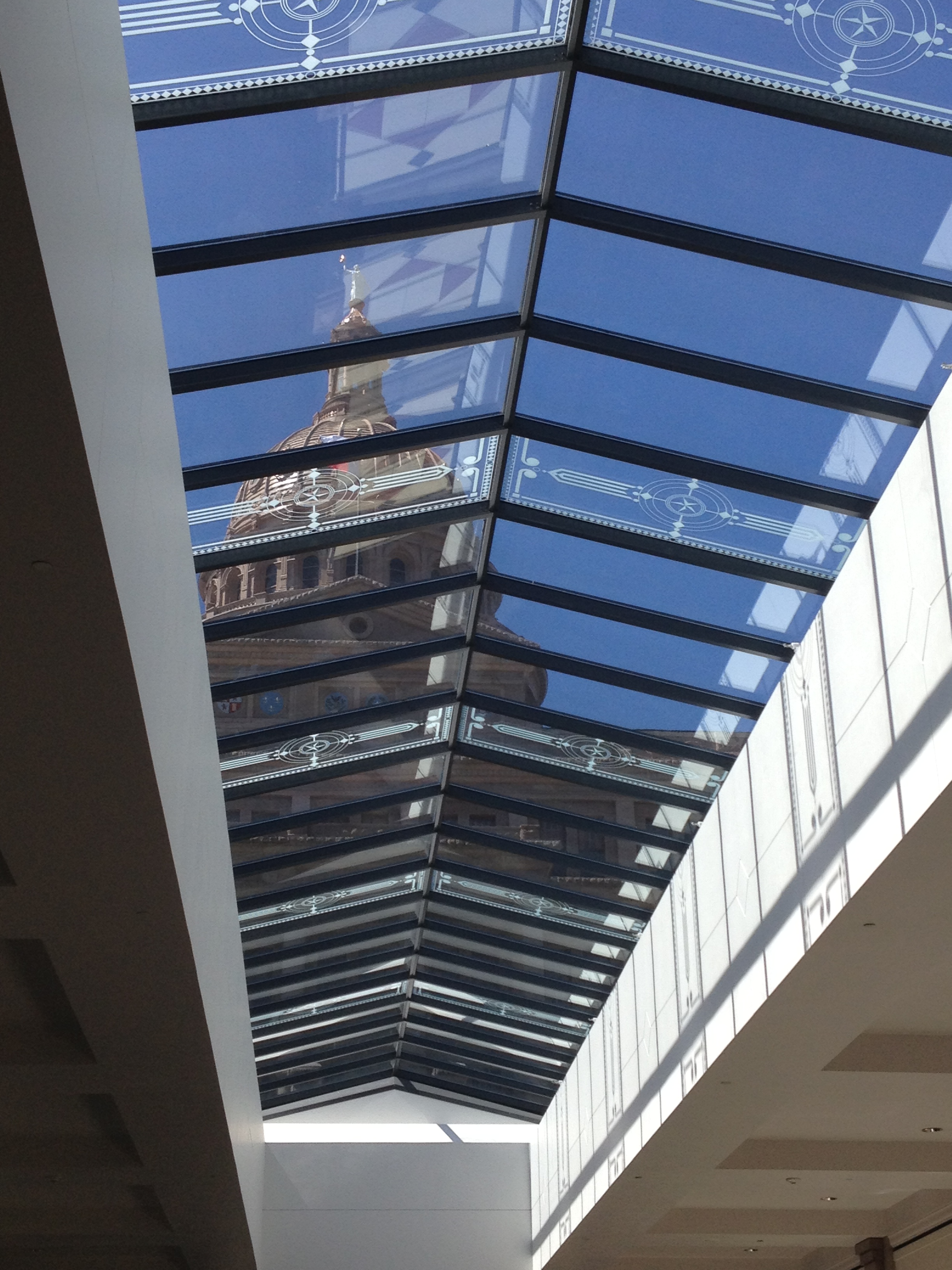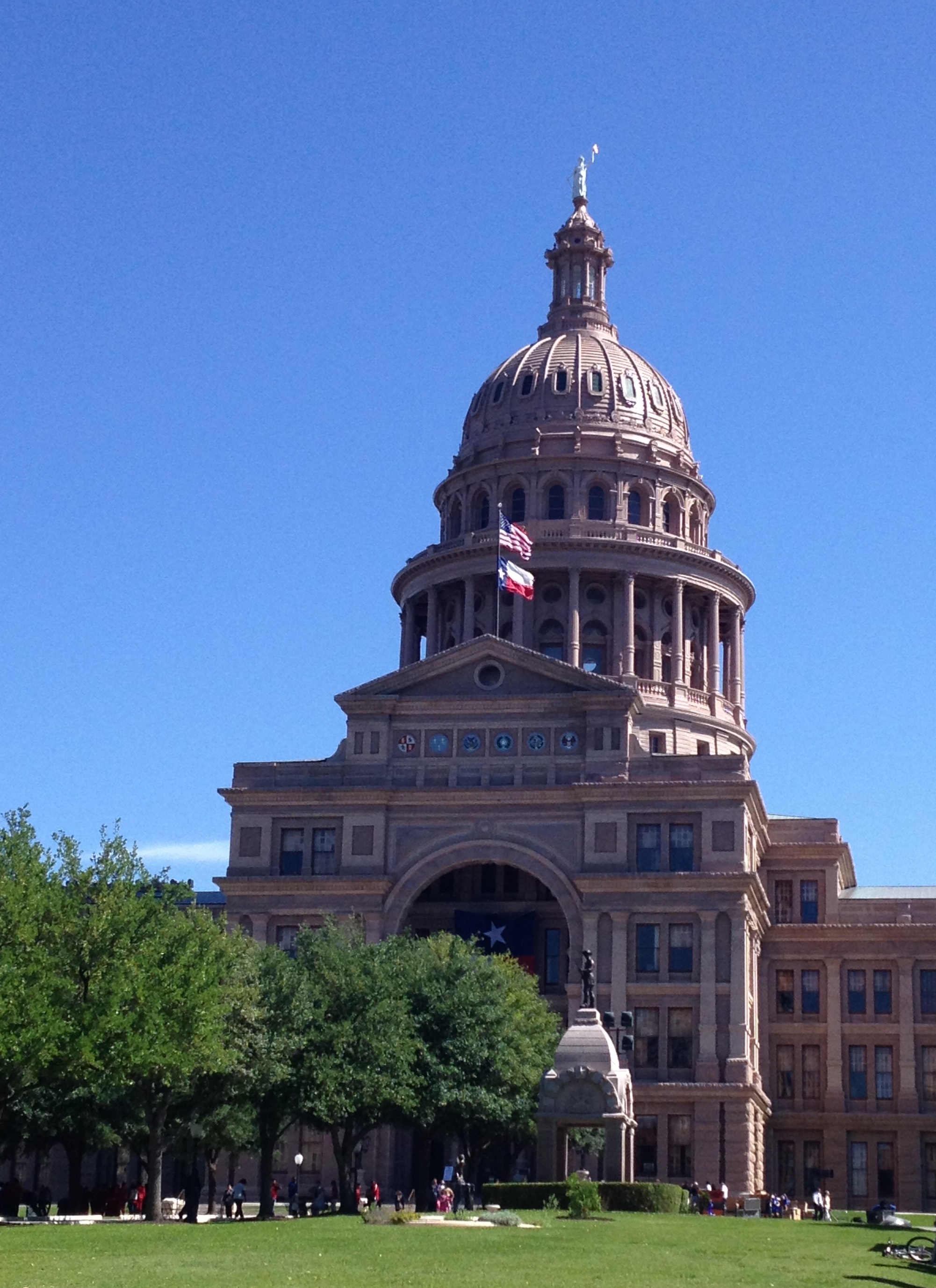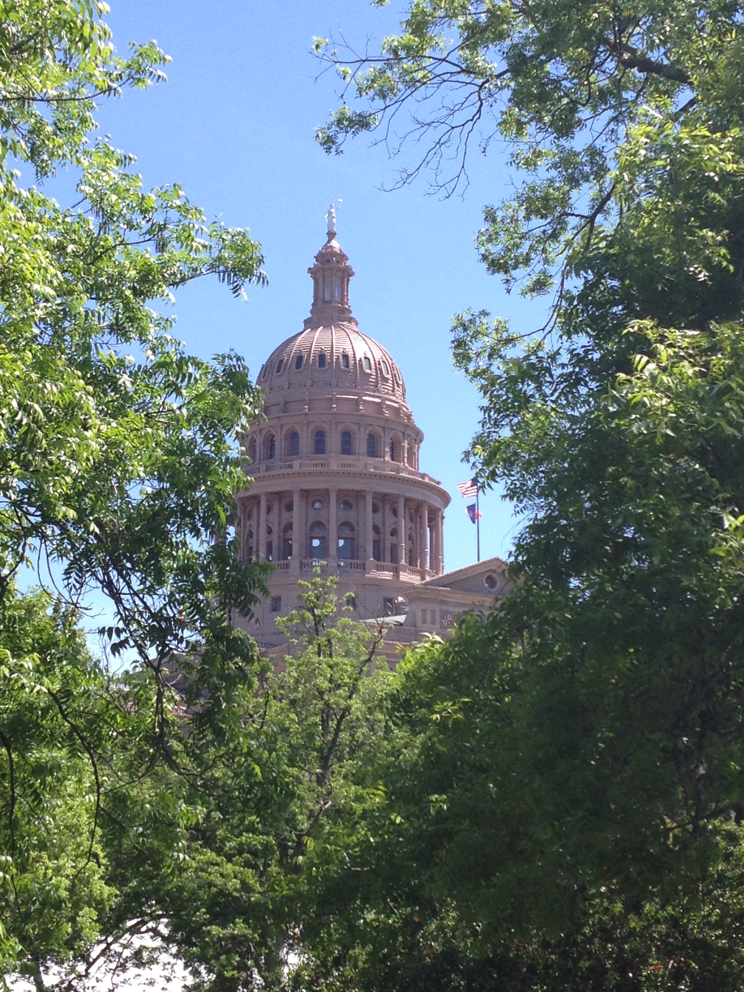 We had a lot to fit into 48 hours in Austin, so we were up and at ’em on Saturday. Our first stop of the day was the State Capitol Building in downtown Austin. Standing 14 feet taller than the U.S. Capitol (those Texans gotta do everything bigger!), it is a gorgeous pink granite structure that was completed in 1888. The “sunset red” granite was mined from Marble Falls, Texas, about 45 miles northwest of Austin. The Texas Capitol is the largest capitol at 360,000 square feet of floor space; though the tallest capitol is Louisiana’s, but our tour guide said they cheated because their capitol is a tower instead of the traditional dome haha. In 1993 the four-story, underground Capitol Extension was completed; since the site is protected as a historical landmark the addition had to be constructed underneath the Capitol. From the ground level you can hardly tell there is double the square footage as the original building lurking underneath.