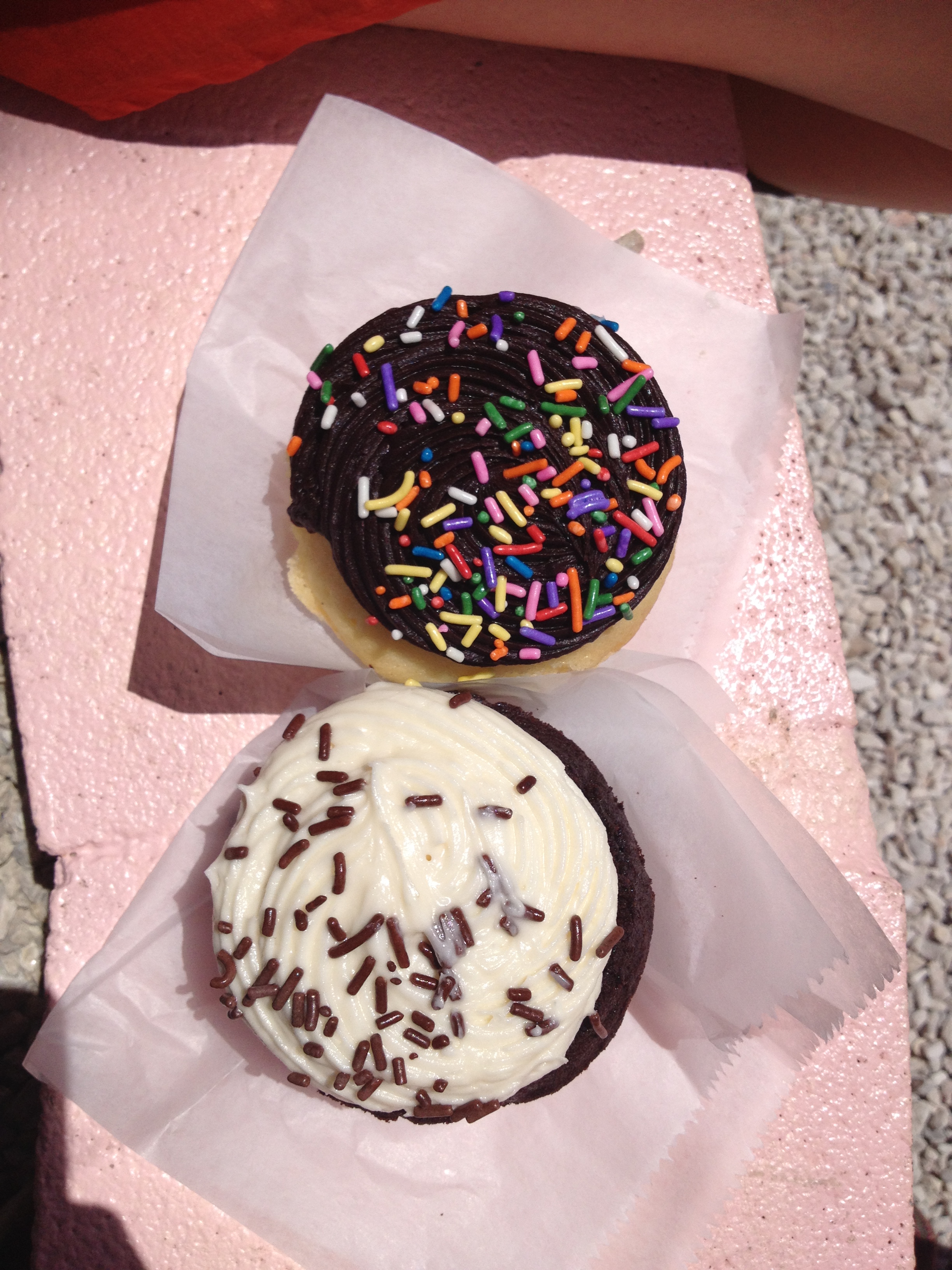 I got The Standard (vanilla cake with chocolate buttercream icing) and Hillary ordered the Michael Jackson (chocolate cake with cream cheese icing).