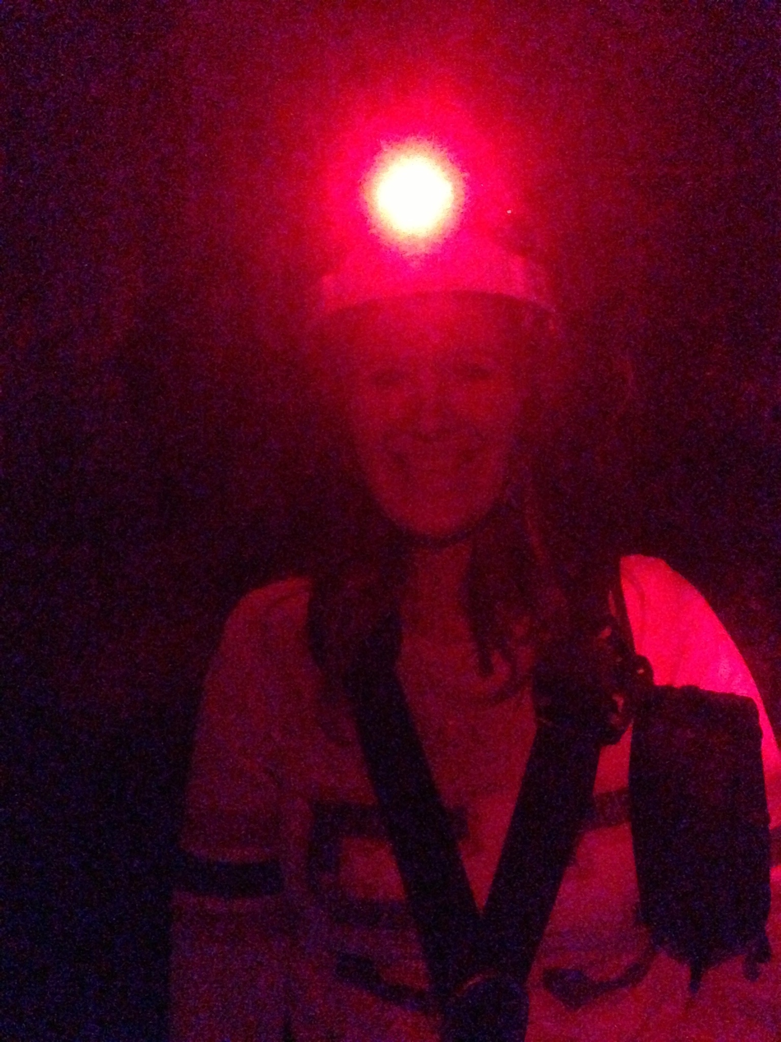 We had red and white lights on our head lamps. We used the white when walking, but switched to red at each zip line so we wouldn’t blind the guides.