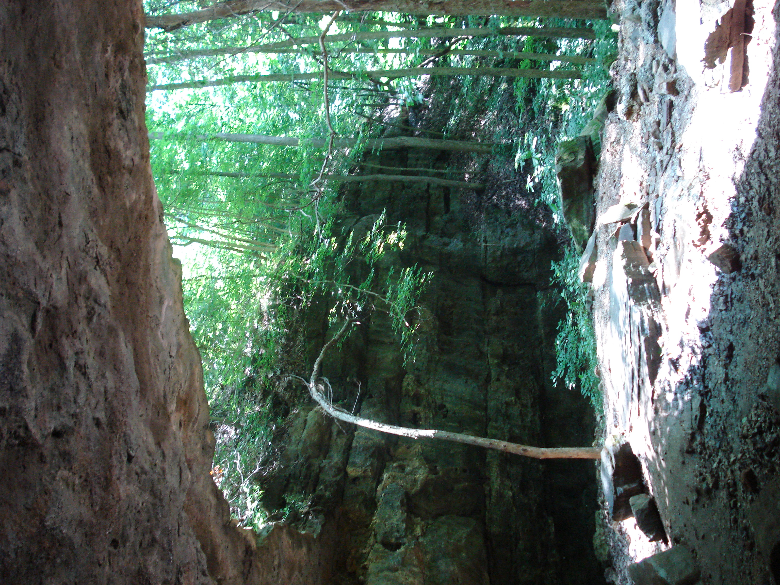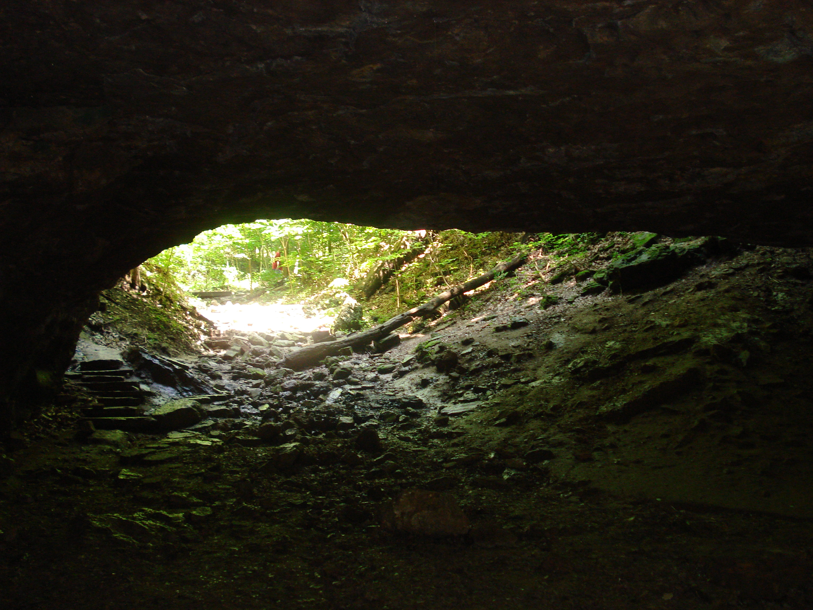 When mom and I visited the park we hiked to a natural bridge and then on up to the “castle”. The natural bridge we visited is located on the Colosseum Trail. It’s an easy hike, just shy of one mile, with plenty of shade so I recommend this one if you’re looking for a nice walk on a hot summer day. The Colosseum Trail is a natural surface trail that winds under the natural bridge and through a large sinkhole that fills with wildflowers in the Spring. The natural bridge is a massive stone arch that remained after a cave system around it collapsed. The natural bridge was actually used as a route to the castle until it was closed to automobile traffic in 1980 due to the narrow road. This trail is a nice and gentle hike to take, and there are more than 15 miles of trails in the park that lead to beautiful sites and down to the lake.