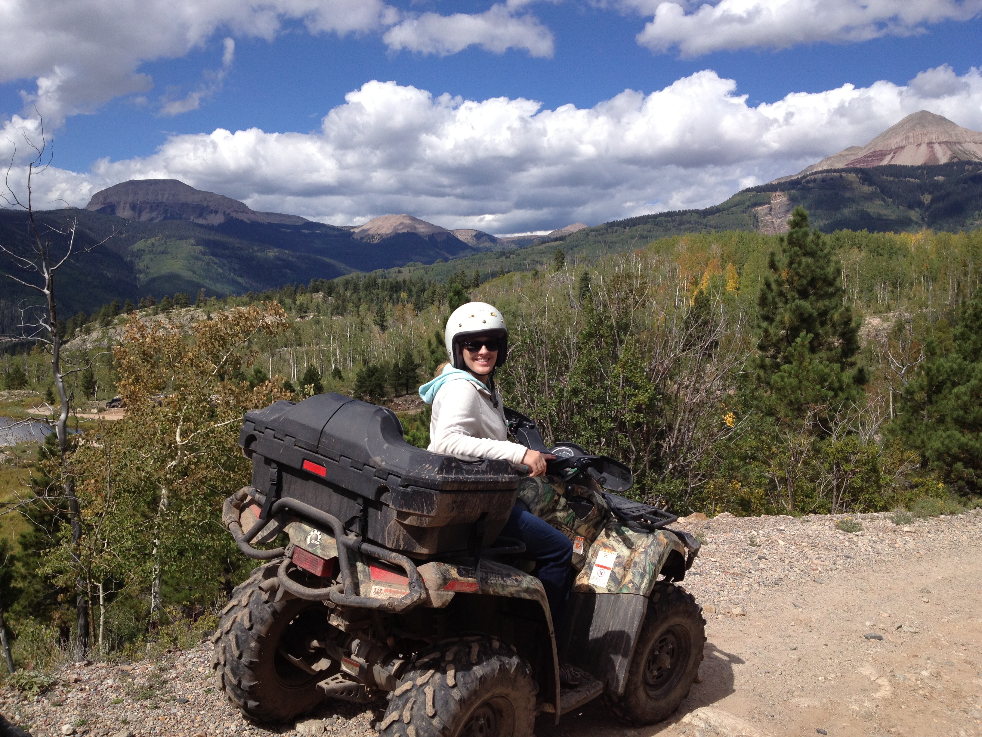 Saturday morning we dragged ourselves out of bed early (actually that’s a recurring theme of this road trip: early mornings!) to go four-wheeling in the mountains! If I had to pick a favorite moment from our entire trip it would probably be this. We checked in with Outlaw Tours downtown and then drove about 30 minutes north on US-550 highway in the San Juan National Forest to our ATV starting point. The outfitter guide was very nice and helpful in describing the trail, its sites and history, what animals to keep an eye out for and where are the best spots to see them, as well as instructing us on how to properly drive the ATVs. And since we were nice lookin’ folk we got to use their brand new ATVs! We then had 2-3 hours to drive through the mountains and explore the beautiful sites.