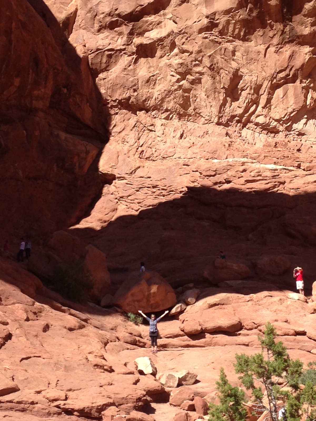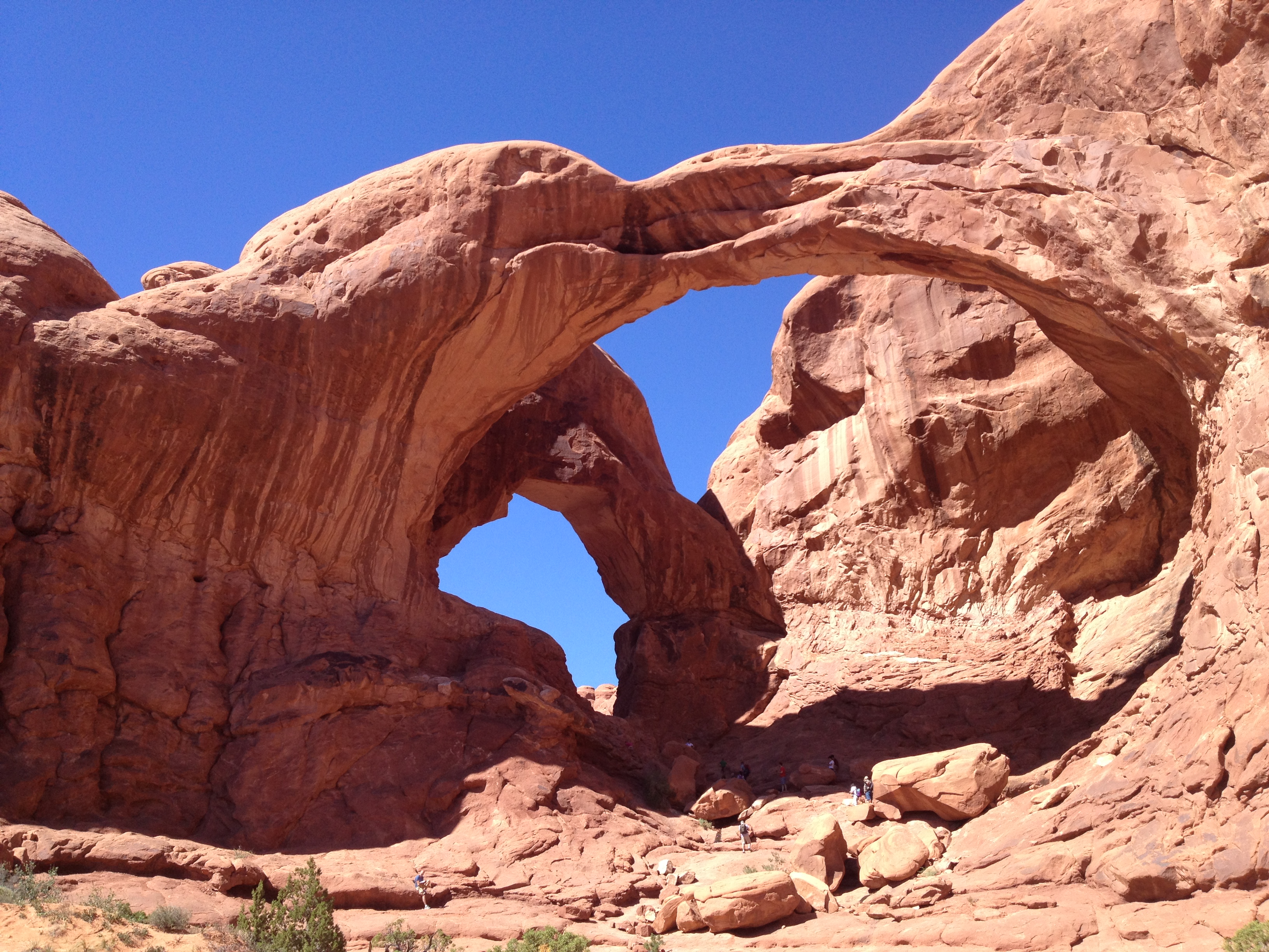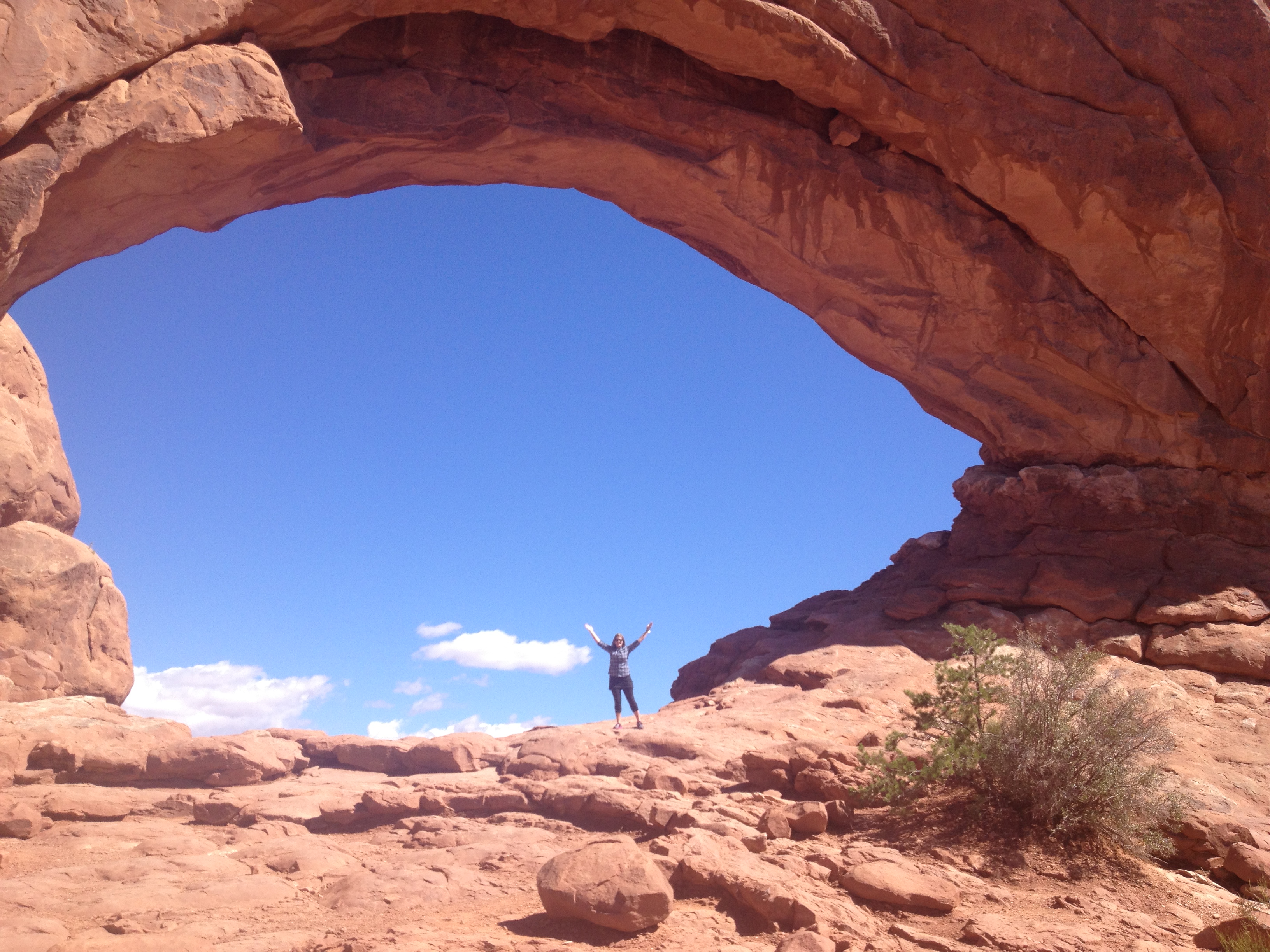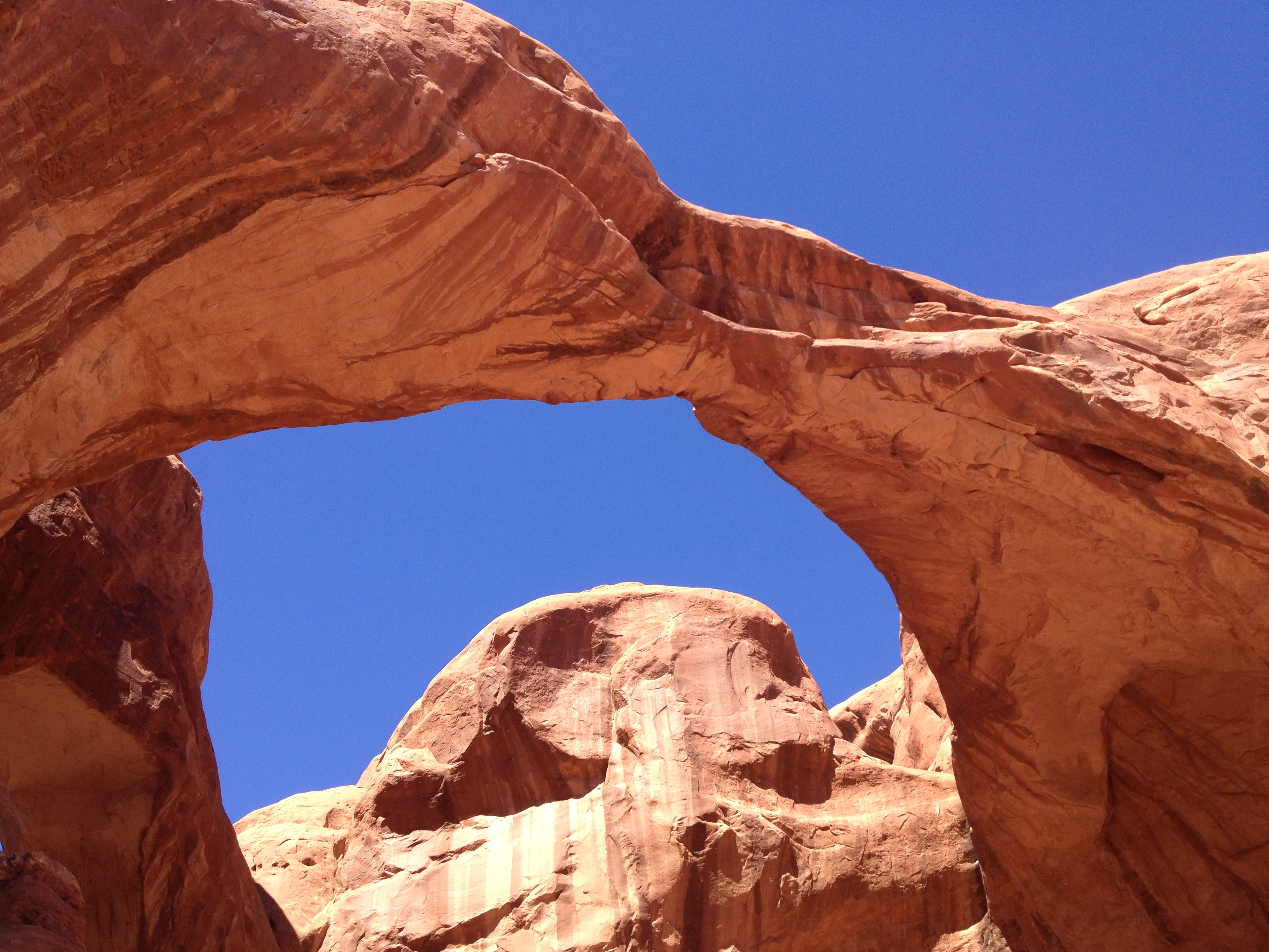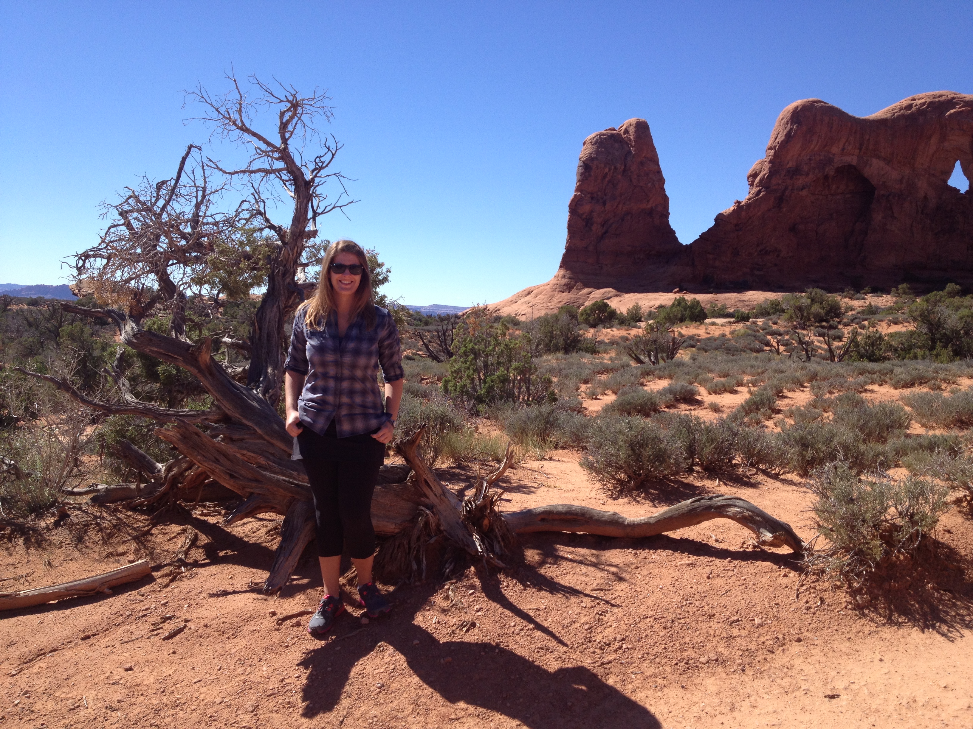 Our last stop in Arches National Park was to hike to the Double Arch, and this was definitely my favorite of the sites. I think it’s impossible to take a bad picture of this formation. You can hike/rock climb pretty far up to the arch and behind it, but without proper hiking shoes I did not feel comfortable doing that. But I did climb a bit of the way.