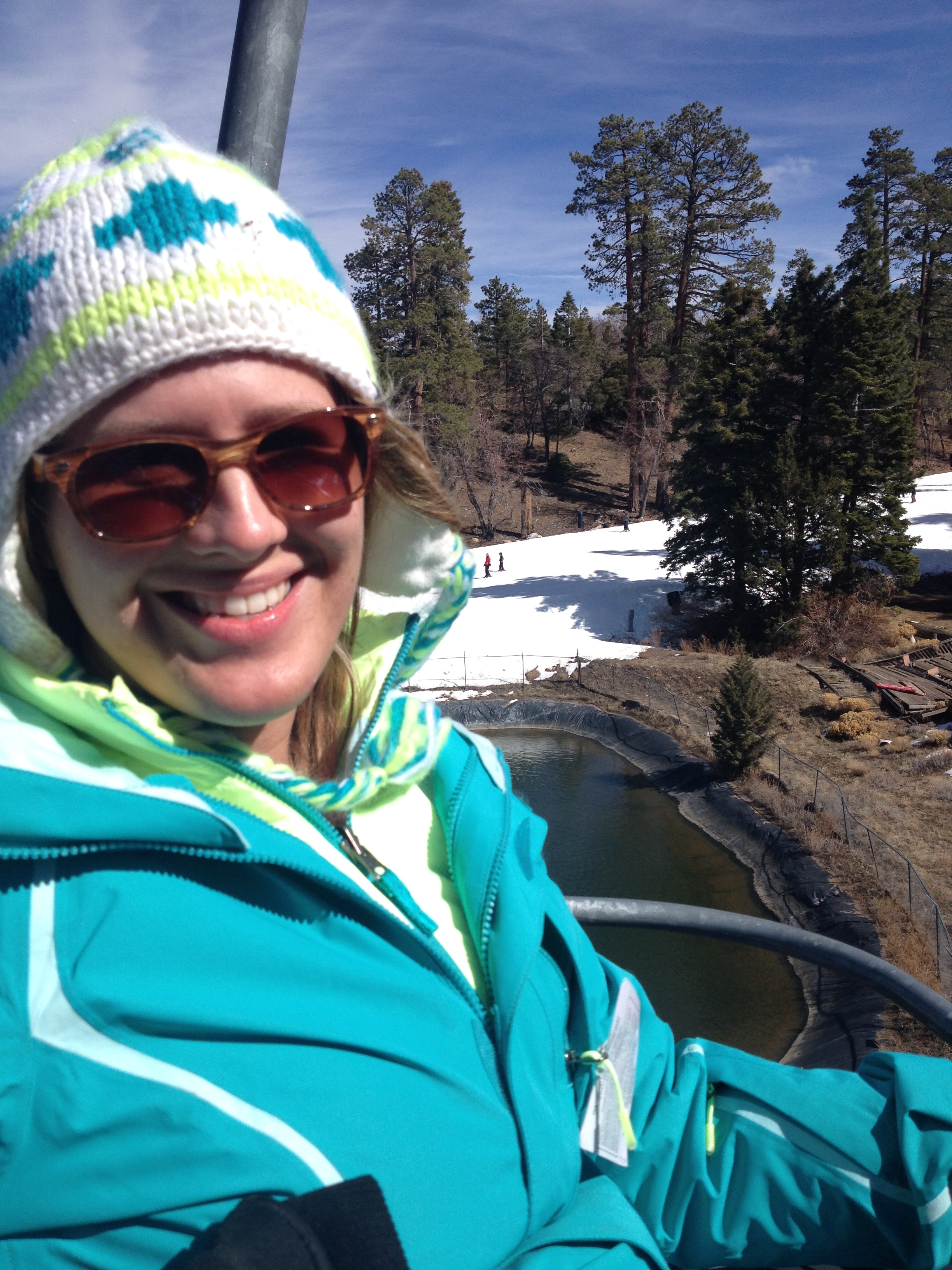 I’m riding the lift to a green slope! (Note: this picture cost Hillary one of her gloves. 😦 RIP glove)
