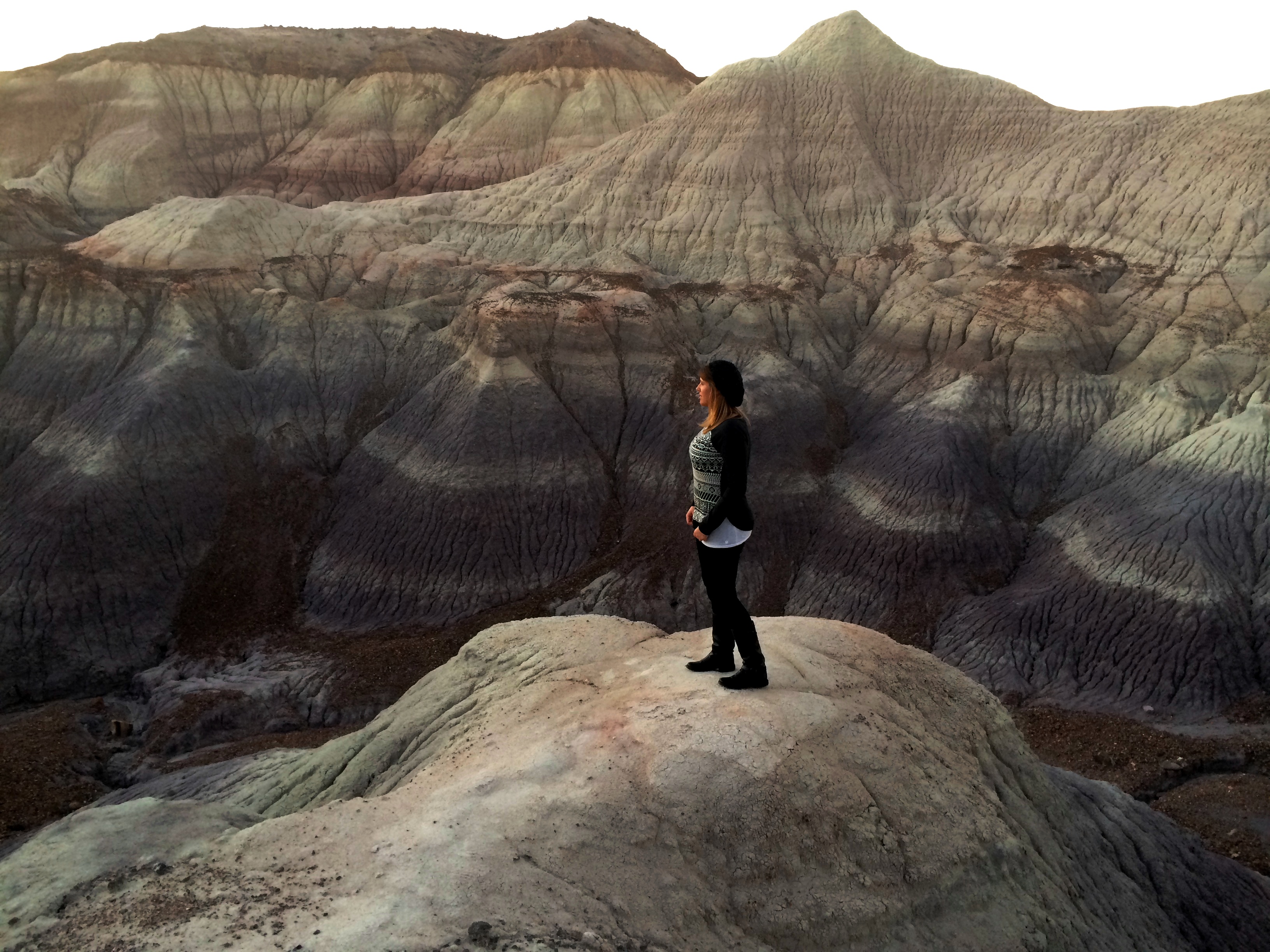 We made it to Petrified Forest and Painted Desert National Park at about 4:15pm, later than we planned, so we were chasing the sun to see the sites before dark. I quickly ran into the visitor center and the park ranger gave me a map highlighting the best sites to stop and with a wry smile told me to drive fast before the sun sets. With my map and token for entry in hand, I raced to our car and told my travel crew to get moving to our first stop at Blue Mesa. I am a firm believer in things happen for a reason, and our timing at Blue Mesa is a wonderful example! Watching the sunset at Blue Mesa was gorgeous and the canyon walls demonstrated amazing colors and lighting. Granted we were too short on time to hike farther into Blue Mesa and we barely spent an hour total in the National Park, but seeing the sun set in the park was awesome!