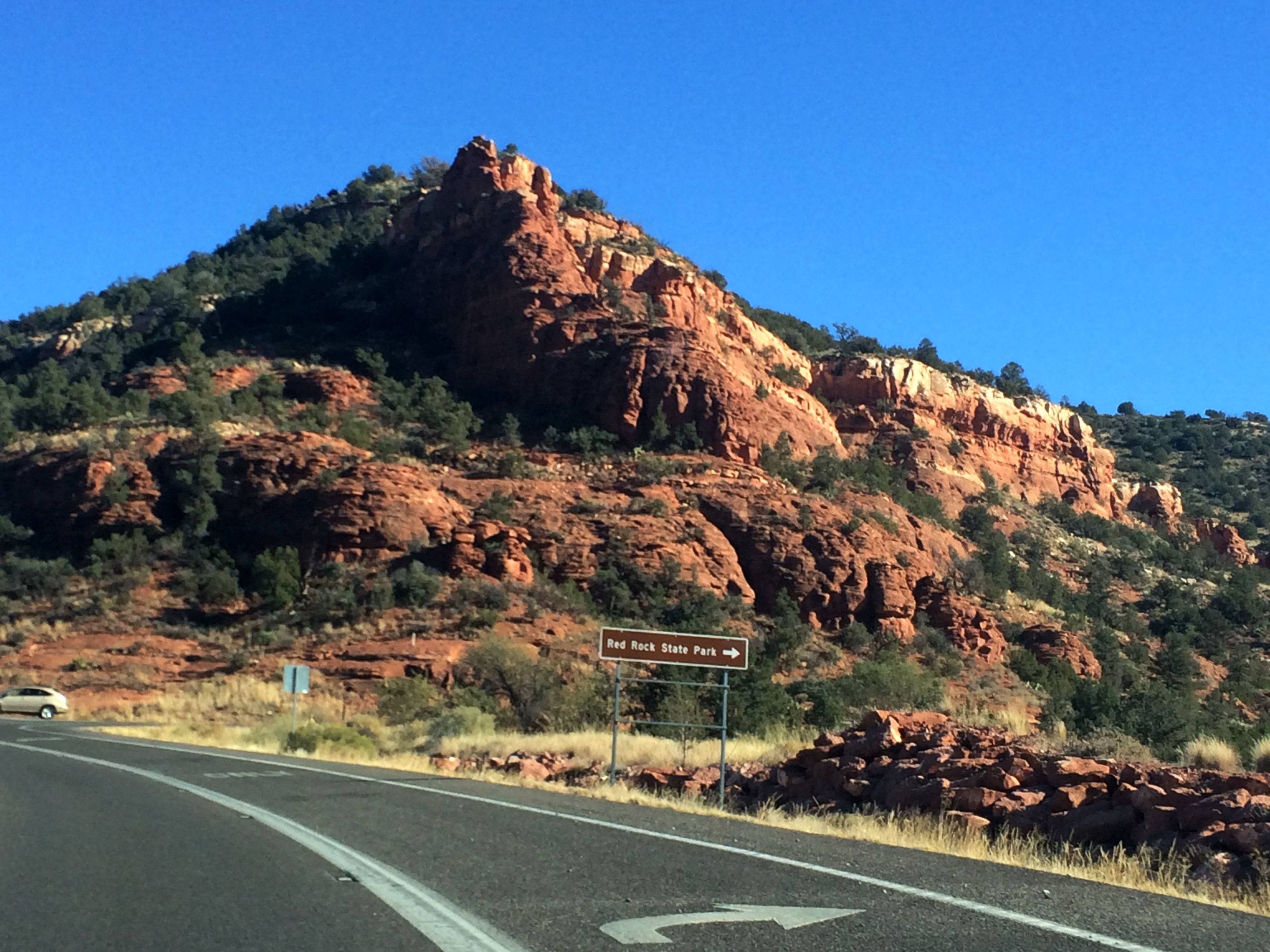 As we exited the park, night had fallen and our tummies were grumbling. We pulled over to a picnic area and made up sandwiches before continuing on to our hotel in Flagstaff, Arizona. We arrived in Flagstaff about 8p.m. and it wasn’t until the morning that I realized we had spent yesterday in the desert but woke up in the mountains! Since Flagstaff is the nearest “big” city to the Grand Canyon and just an hour south from it, I did not expect to be cuddled up to mountains! The breathtaking scenery provided a beautiful and crisp-air morning for our drive farther south to Sedona, Arizona.