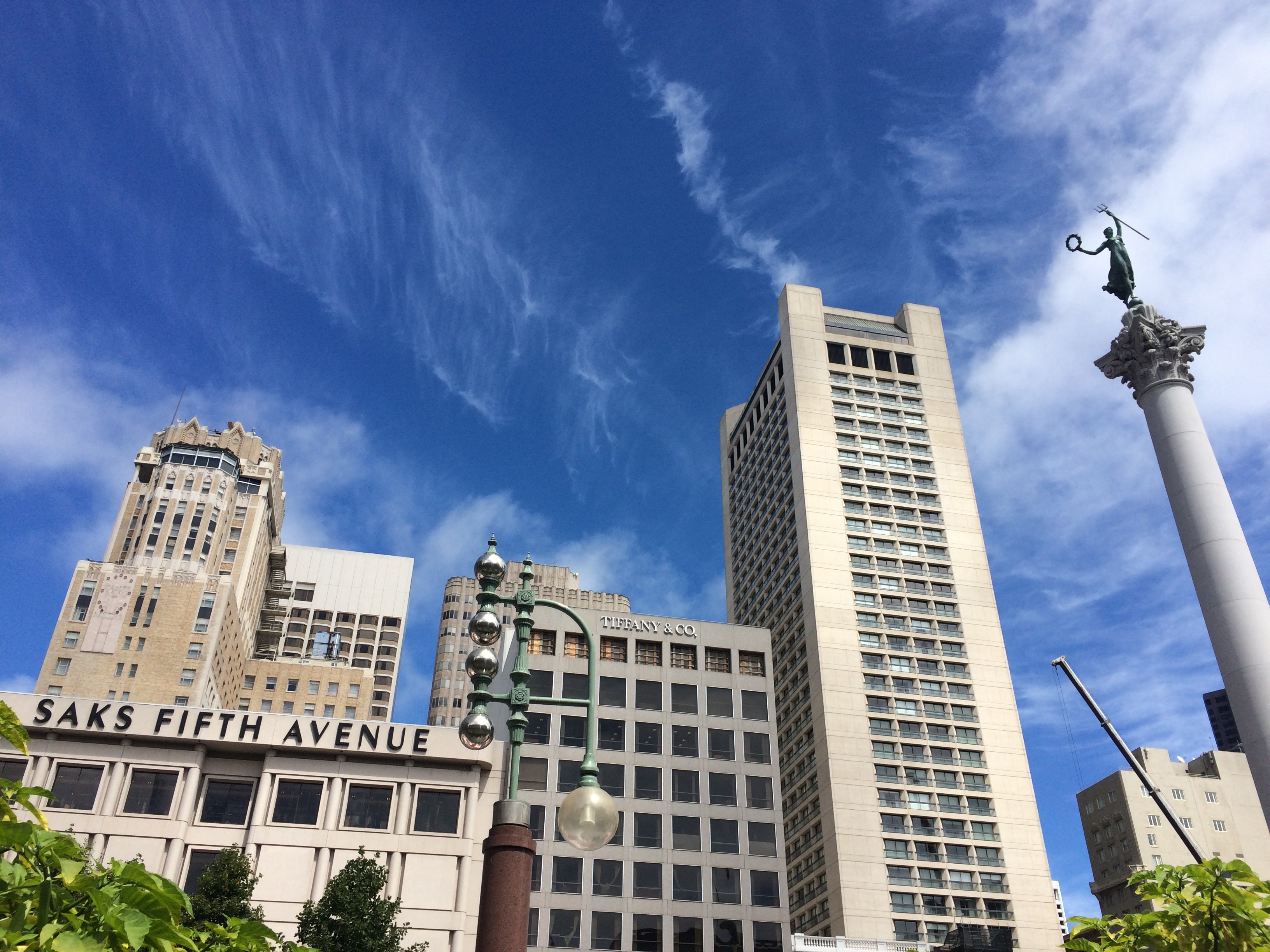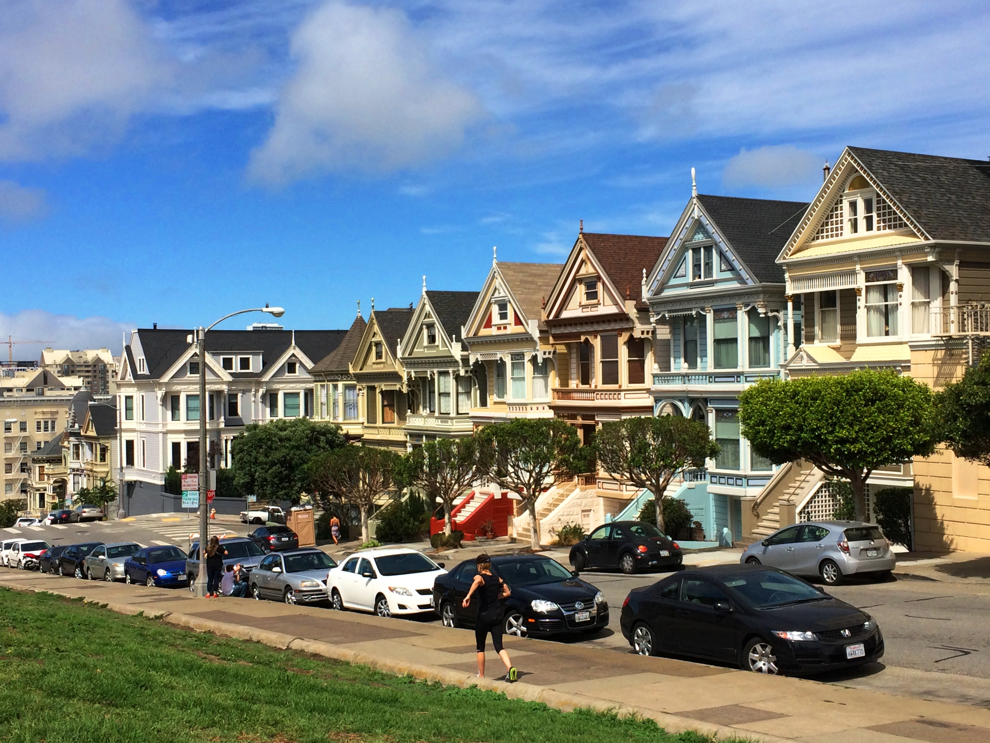 From the top of the crooked street we hopped back on the trolley and took it to Union Square. We just walked around snapping photos before we decided to add in a little shopping! One hat and pair of earrings later we were on our way via bus to Alamo Square for a date with the Painted Ladies. “Painted Lady” is a phrase to describe Victorian houses painted in three or more colors that emphasize the house’s architectural details. The Painted Ladies in San Francisco consists of seven homes near Alamo Square that were built between 1892 and 1896 and are embellished with multiple pastel colors. It’s a fun tourist attraction in SF that is featured in many movies and television shows!